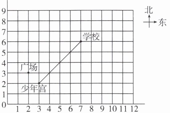 (2)如果一个小正方形的对角连线表示1km,那么学校在少年宫的(
