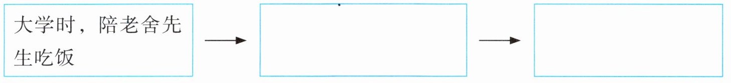 1. 把“我”与老舍先生交往的三件事补充完整。老舍先生这样一位有影响力的大人物做过许多大事,作者为什么要写这些“芝麻绿豆”的小事呢?