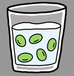 将绿豆放入清水中浸泡,绿豆吸水膨胀,表皮逐渐软化,为萌发积蓄水分与能量。