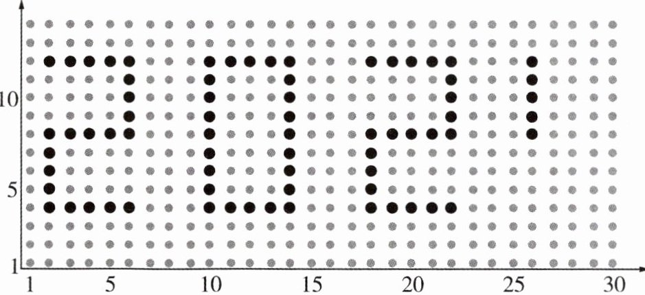 1. 无人机表演时,若想亮起“2025”图案,需要点亮5组无人机尾灯,它们分别是从$(26,12)到(26,8)$;从$(