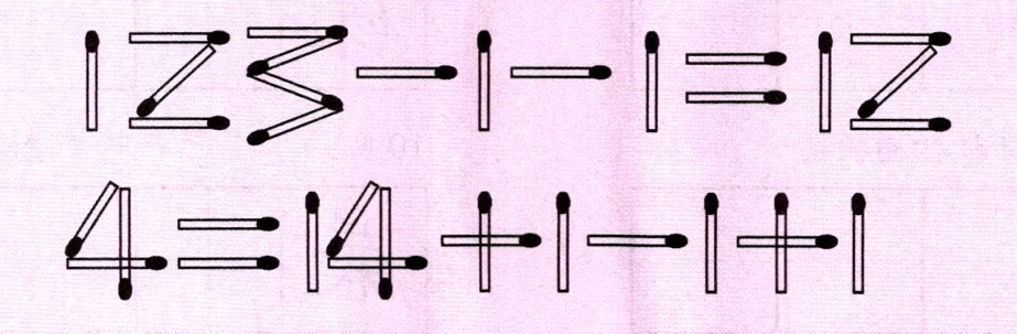 2. 下面是两个不成立的算式,你能每个算式只移动一根火柴,使它们变成成立的算式吗?
