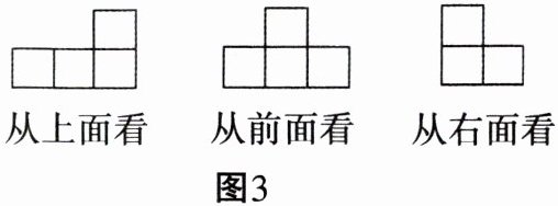 4. 宁宁用几个$1dm^3$的正方体积木摆成了一个物体,图3是从不同的方向看到的物体的形状。这个物体的体积是(
