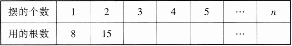 (1)按照上面的摆放方式,将下面的表格填写完整。