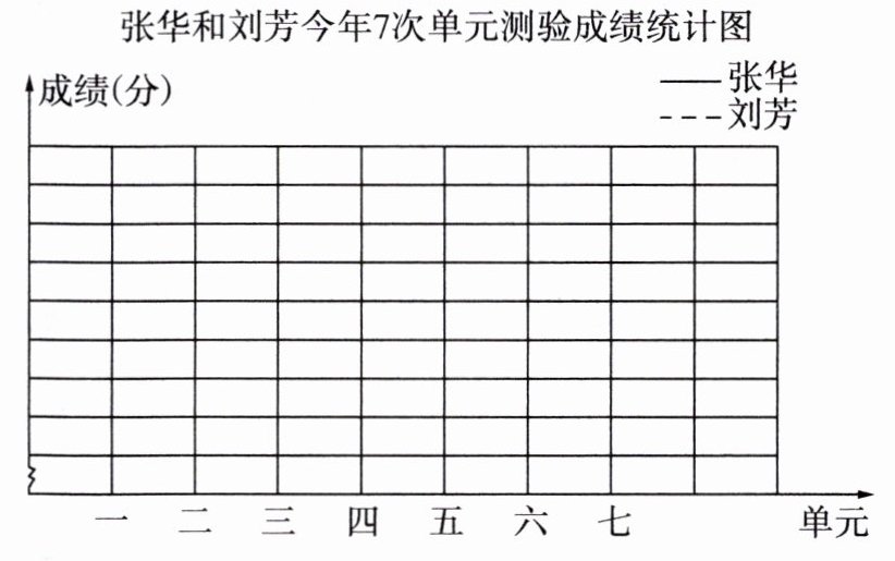 下面是张华和刘芳今年7次单元测验成绩表,请根据统计表,绘制折线统计图。
