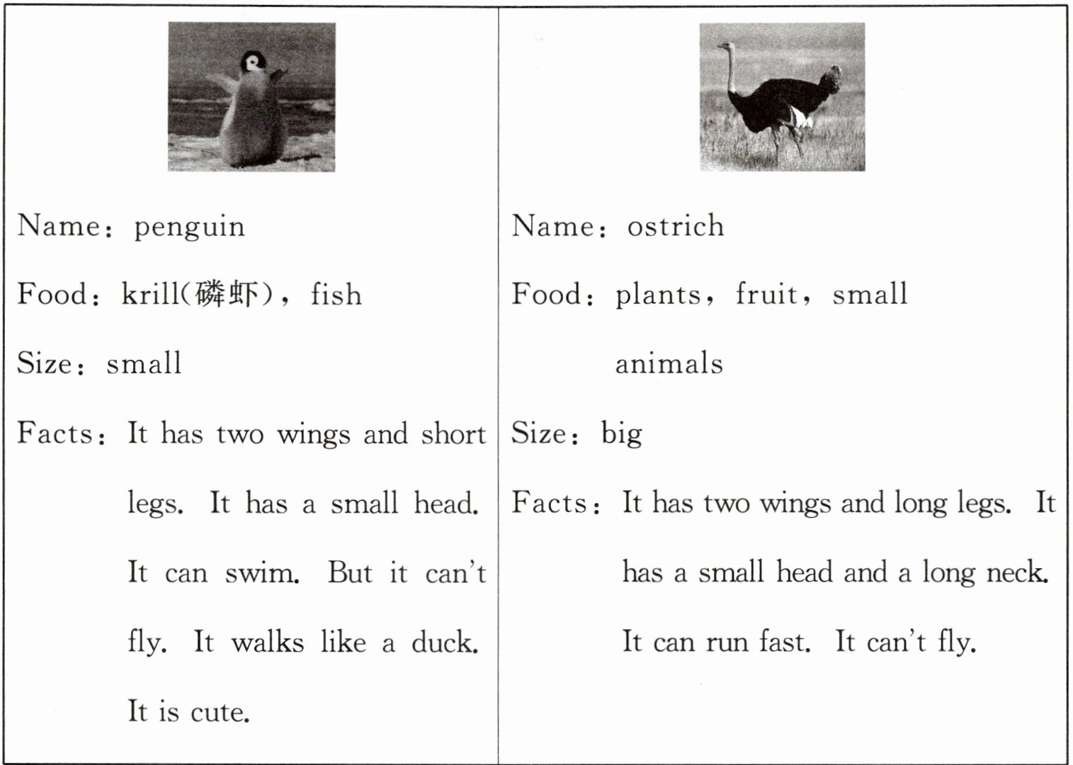 任务二:阅读文本,勾选出文中两种动物的共同特征。