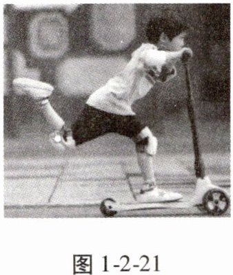 1. (2024·呼和浩特中考)如图1-2-21所示是马恒同学在公园里玩滑板车的情形。他站在滑板车上不断蹬地,使滑板车沿水平方向前进。关于此情形,下列说法正确的是(