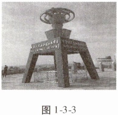 2. 黄海海平面是中国高程系统的重要基准面。在青岛的黄海海滨矗立着一座“中华人民共和国水准零点”雕塑,标志着“高度从这里开始”。如图1-3-3所示,这座雕塑高6m,质量约为10t,它的四个支脚处在同一水平面上,每个支脚与地面的接触面积约为250cm²,则它对地面的压强大约是 (