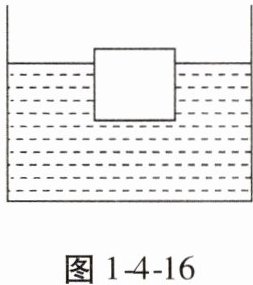 15. 如图1-4-16所示,质量为1kg的立方体木块静止在水面上时,露出水面的体积为总体积的$\frac{1}{5}$。(已知$\rho_{水}=1.0×10^{3}kg/m^{3}$,$g$取10N/kg)