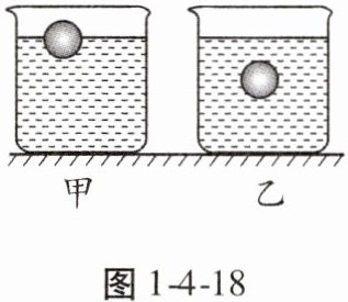 2. (2024·黑龙江中考)将两个完全相同的小球分别放入装有不同液体的甲、乙两个完全相同的烧杯中,小球静止时两烧杯液面相平,如图1-4-18所示。下列判断正确的是(
