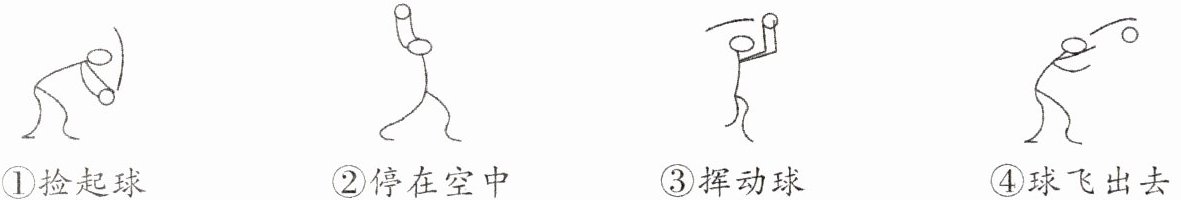 1. 投掷实心球是中考体育项目之一。如图1-5-3所示是投掷实心球的四个过程,其中手对实心球做功的过程是(
