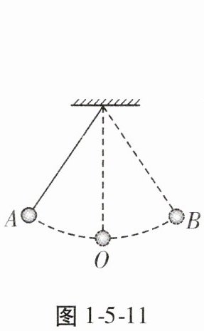 9. 如图1-5-11所示,将摆球从A点由静止释放,经过最低点O到达B点,A、B两点等高,摆球到达B点时动能为