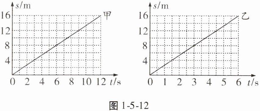 11. 在探究“汽车的速度”的实验中,甲、乙两辆相同的汽车在同一水平路面上做直线运动的图像如图1-5-12所示。由图可知,甲车的动能