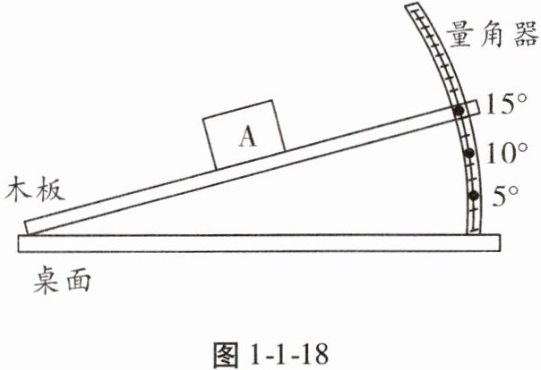 5. (2024·济宁中考节选) 小明将木板一端置于水平桌面上,另一端与量角器组装成斜面(如图1-1-18所示),按以下步骤进行实验,实验数据记录如下表。