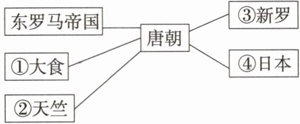 (2)原因:唐朝经济繁荣,文化昌盛,经济、文化处于世界领先地位,唐朝是当时世界上强盛的国家;唐朝实行开放的对外政策;唐朝时海陆交通发达。