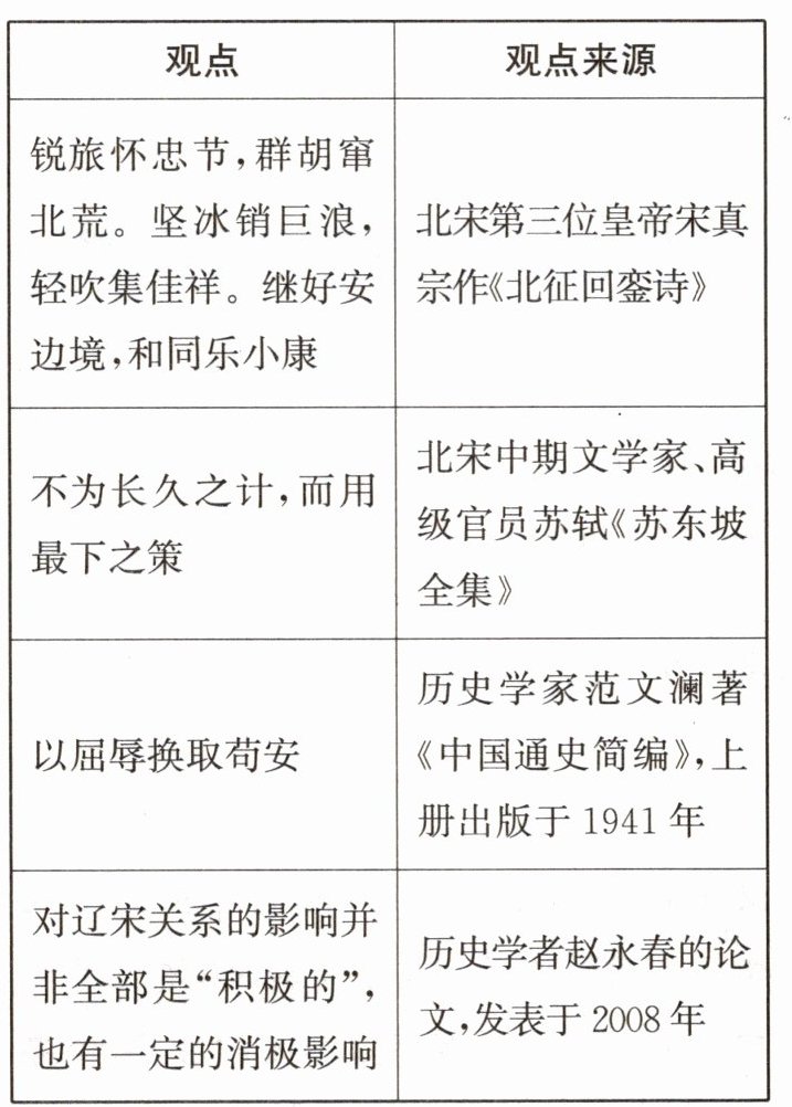 8. (唯物史观)下表中观点是对澶渊之盟的评价,由此可见(