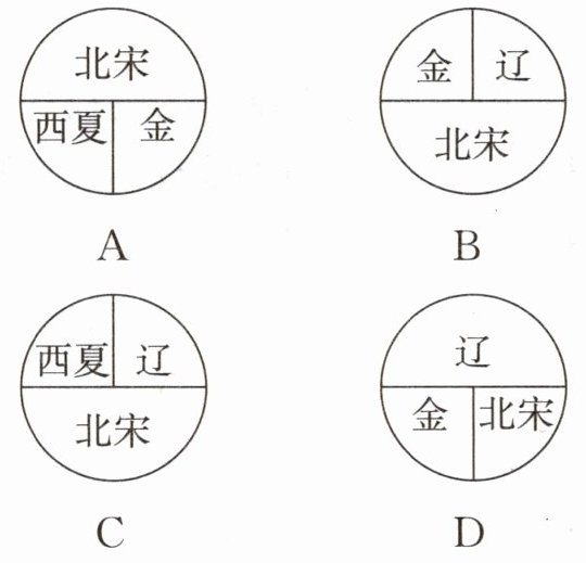 7. (时空观念)下列示意图能正确反映北宋与周边民族政权并立的是(