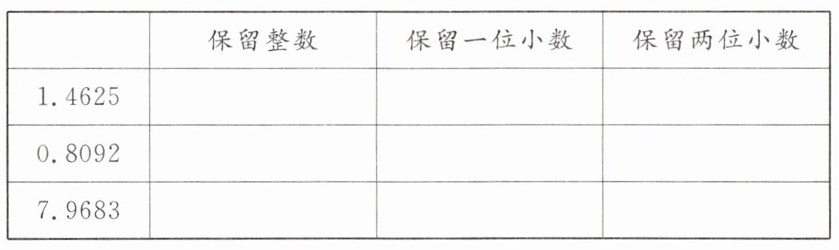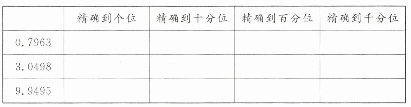 三、按要求写出表中小数的近似数。