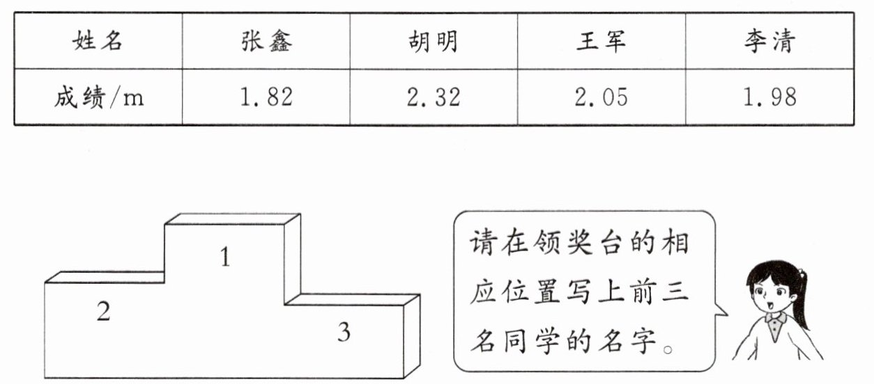 1. 四年级四名同学的跳远成绩如下表。