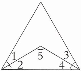 2. 如图,等边三角形内有一个等腰三角形,且$∠1=∠2$,$∠3=∠4$。试求出$∠5$的度数。