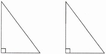用下面两个完全相同的直角三角形可能拼出什么样的图形?先拼一拼,再把它们依次画出来。
