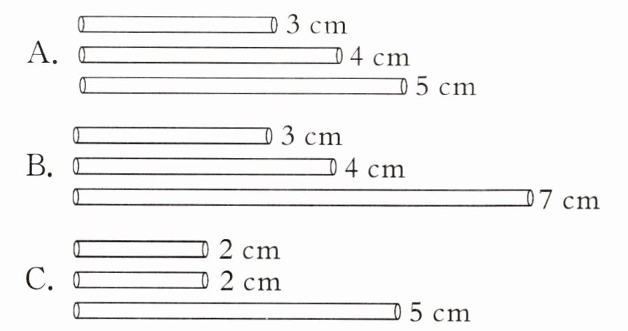 3. 下面各组小棒,可以组成一个三角形的是( )。