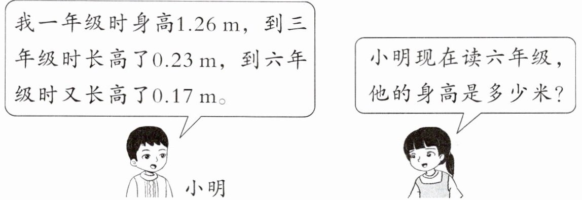 3.【开放题】悦悦喜欢和爸爸比身高,她总想着快点长大。____,她站在离地$0.6\mathrm{m}$高的椅子上,比爸爸高$0.18\mathrm{m}$。爸爸的身高是多少米?