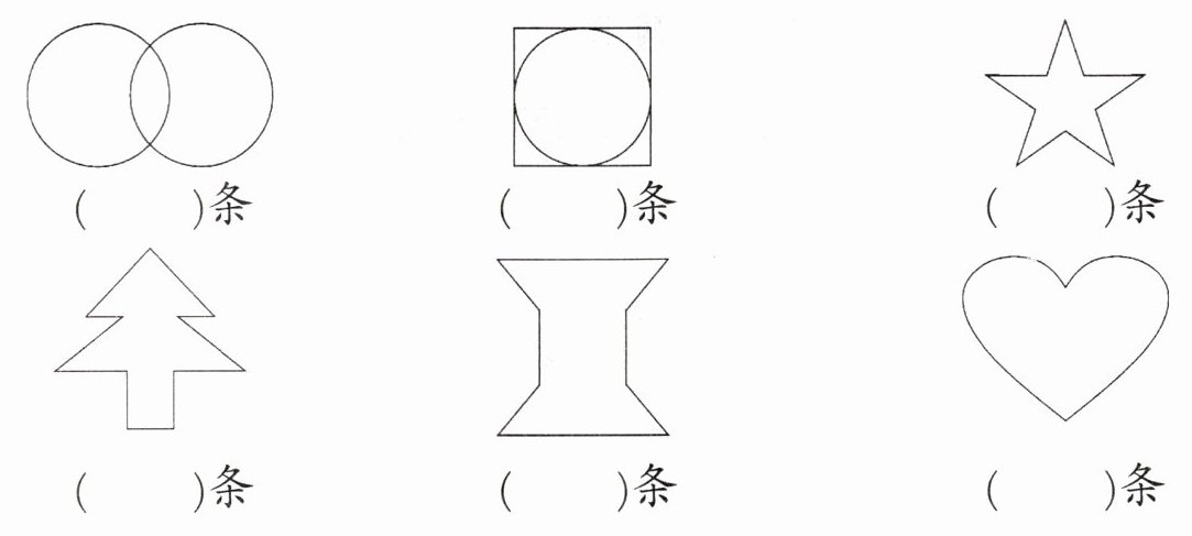 三、画出下面轴对称图形的对称轴,并在图形下面写出每个图形对称轴的条数。