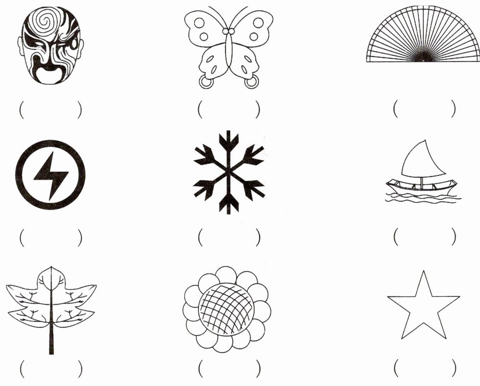一、下面哪些图形是轴对称图形?在括号里画“√”。