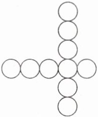 六、(河南省开封市顺河区求实中学期末)用10枚同样大小的硬币摆成如图的形状。如果只允许移动其中的两枚硬币,使新的图形上下对称,而且横行、竖行都是6枚硬币,那么,应该移动哪两枚硬币?在图上标出移动过程。