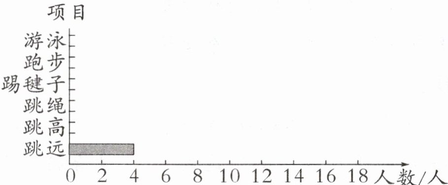 (2)喜欢跳远和踢毽子的人数相差最大。 $ 14 - 4 = 10 $(人)
