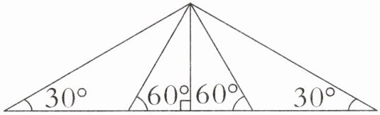 6. (湖北省鄂州市梁子湖区期末)下图中,一共有( )个钝角三角形,( )个直角三角形,( )个等腰三角形,( )个等边三角形。