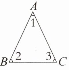 5. 如右图,在三角形 ABC 中,$AB=AC,∠2=65^{\circ }$,则$∠1=($ )。
