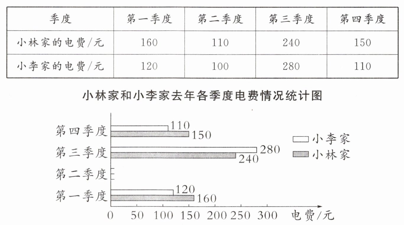 (2)小林家第( )季度电费最多,原因可能是( )。
