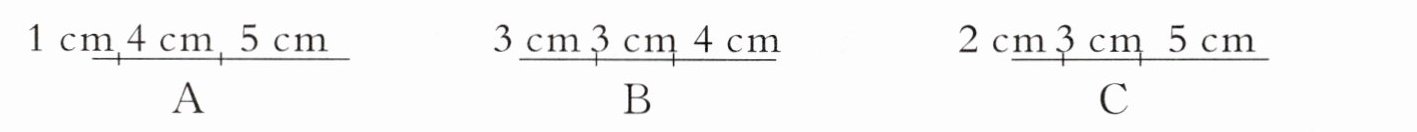 4. 把一根 10 cm 长的竹条剪成三段做竹编,( )正好可以拼成三角形。