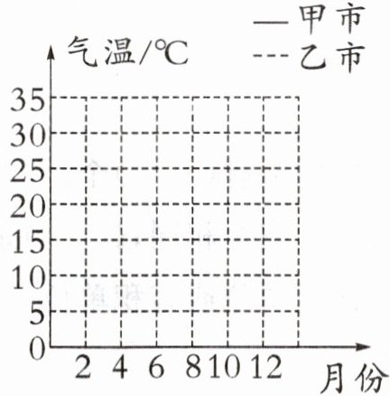 (2)甲市平均气温最高在 8 月,乙市平均气温最低在 10 月。