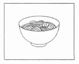 1. noodles 2. soup 3. egg 4. juice 5. bread