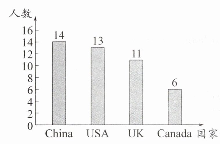 Ⅴ.【跨学科】国际一班的学生来自不同的国家。阅读统计图,判断句子正(T)误(F)。