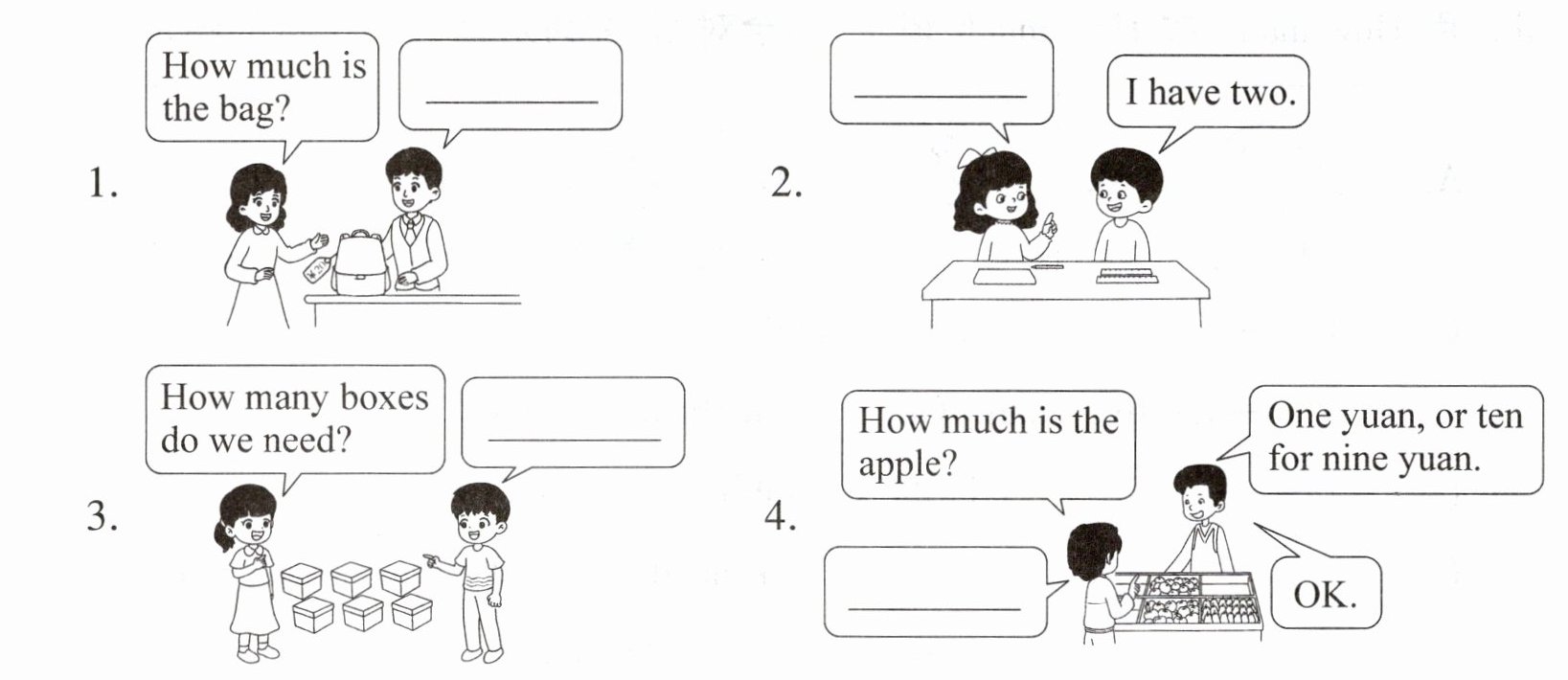 任务一:根据短文内容,用阿拉伯数字写出下列物品的数量。