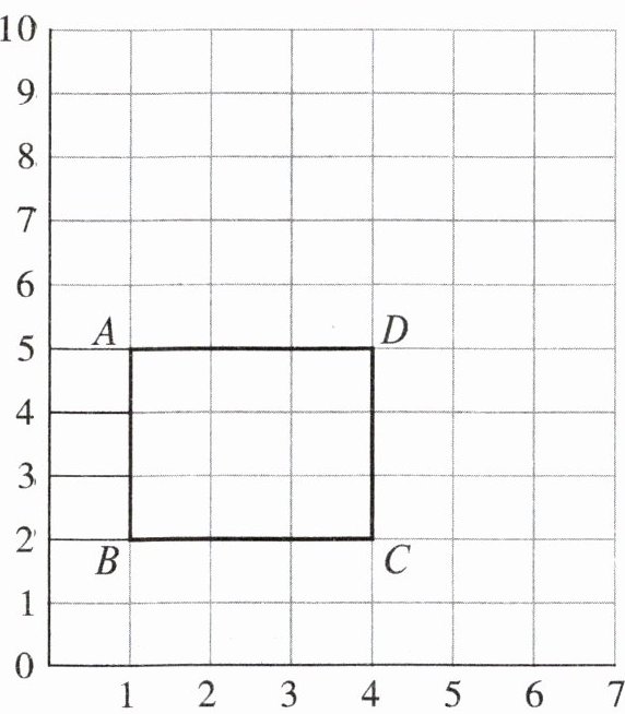 (1) 用数对表示长方形 4 个顶点的位置:A( , )、B( , )、C( , )、D( , )。