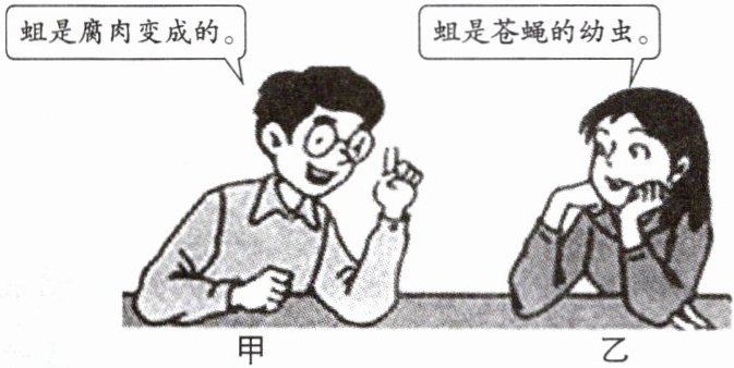 3. “腐肉生蛆”是日常生活中常见的现象。甲、乙两个同学对这个现象有不同的看法,到底谁的观点正确呢? 请你设计一个实验方案,并对实验结果进行分析。