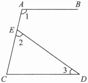 6. 如图,$AB// CD$,则$\angle 1与\angle 2 + \angle 3$的关系是( ).