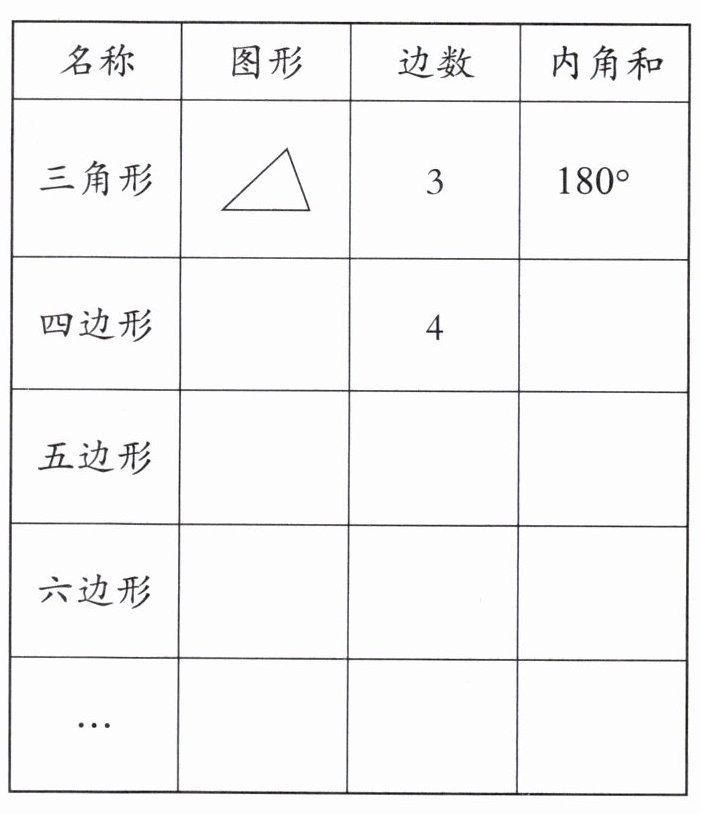 |名称|图形|边数|内角和|