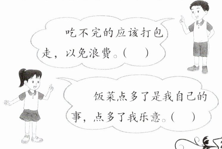“光盘行动”倡导厉行节约,珍惜粮食,反对铺张浪费。请在你赞同的观点后面画“√”。
