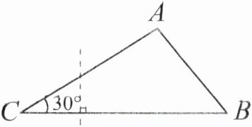 在上面的三角形中,∠C是30°,沿着虚线剪去这个角后的图形是( )形,这个图形的内角和是( )。
