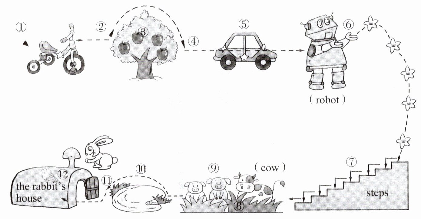 【答案】:apple; Jump; car; robot; flower; steps; cow; pig; door; pear