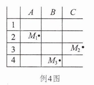 分析:要确定办公楼、实验楼所在区域,先竖着找出其所在的字母区域,再横着找出所处的数字区域,两者合在一起便使问题得以解决。