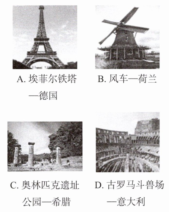 选项A,埃菲尔铁塔是法国的著名景点,而不是德国的,故A错误;