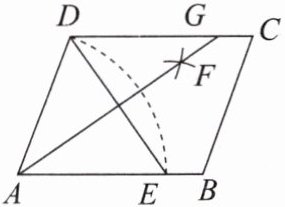 正确作图分析:以$A$为圆心,$AD$为半径画弧交$AB$于$E$,所以$AE = AD = 5$;以$D$、$E$为圆心,大于$\frac{1}{2}DE$为半径画弧交于两点,过两点的直线即$AG$,所以$AG$是$DE$的垂直平分线,设垂足为$O$,则$DO = OE=\frac{DE}{2}=3$,$AG\perp DE$。