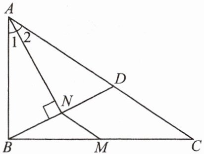 3. 如图,$M是\triangle ABC的边BC$的中点,$AN平分\angle BAC$,$BN\perp AN于点N$,延长$BN交AC于点D$,已知$AB = 10$,$BC = 15$,$MN = 3$。