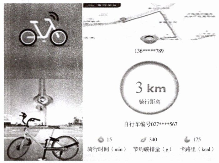 2. 共享单车以倡导绿色、环保、低碳出行的理念,受到人们的热捧。如图是体重$500N的小雨骑行重约250N$的单车后分享的行程详情。通过计算回答: